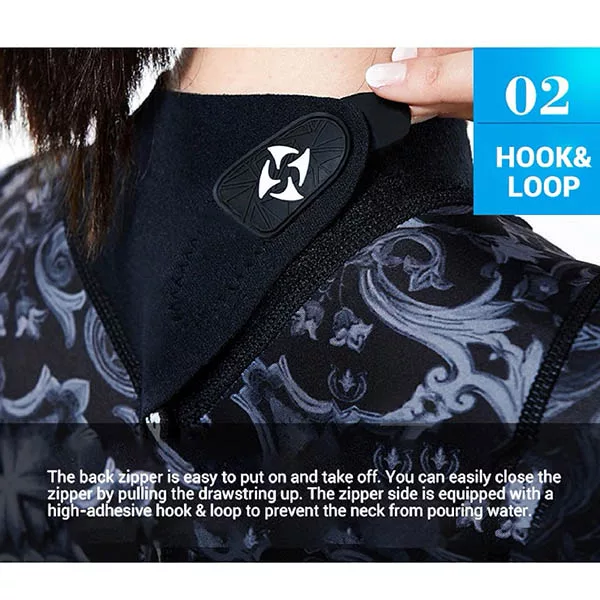 O fato THREO possui uma alça longa no fecho nas costas, que facilita o colocar e tirar rápido e fácil. O lado do fecho é equipado com um velcro de alta aderência para evitar que a água entre pelo pescoço. O material premium oferece melhor proteção contra piolhos-do-mar, águas-vivas, recifes de coral e outros irritantes biológicos. O design tridimensional e slim é adequado para a maioria das proporções corporais e previne abrasões ou arranhões. Melhora muito o conforto ao usar e permite que você aproveite plenamente os desportos aquáticos. Perfeito para vários desportos aquáticos, como mergulho, surf, snorkel, natação, remo, etc. A temperatura de água recomendada para este fato de neoprene 3mm é de 18°C a 20°C.