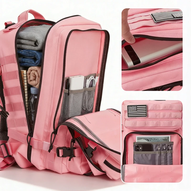 Estou muito feliz com essa mochila tática—a regulagem é ótima e tinha espaço suficiente para minha câmera, comida e roupas extras.