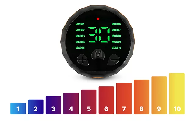 Ajuste a intensidade para o nível que preferir. Comece suavemente e aumente conforme seus abdominais ficam mais fortes.