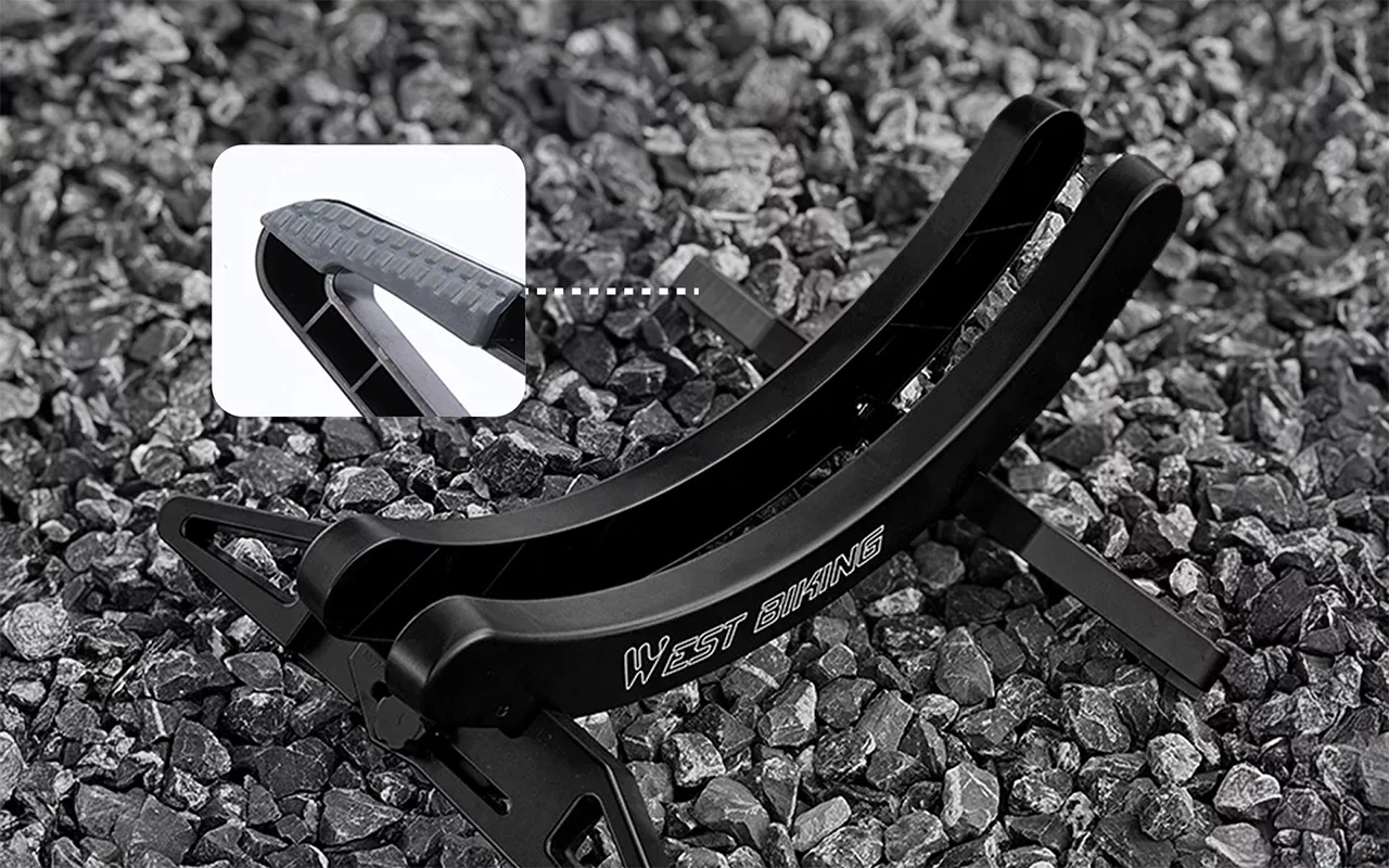 O design evita deslizamentos em superfícies lisas ou irregulares. Sua bicicleta permanece no lugar mesmo em azulejos ou concreto. Isso reduz o risco de quedas e arranhões.