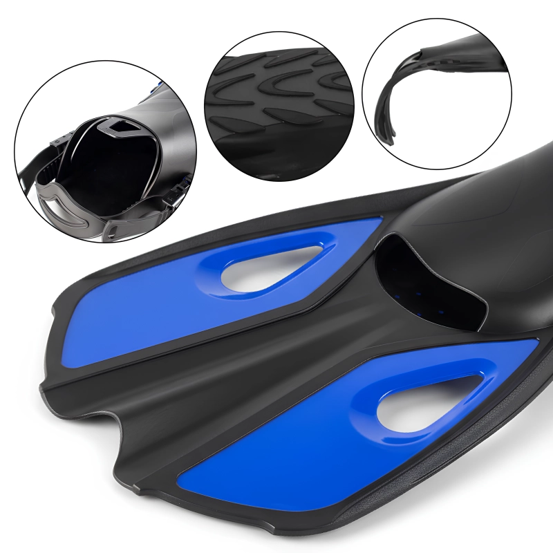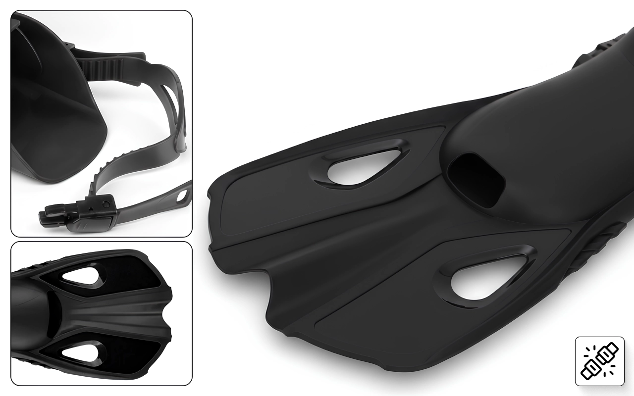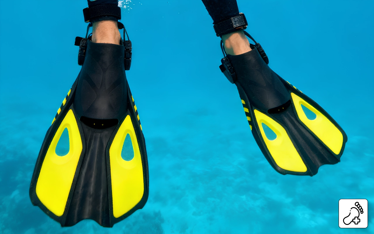 Com essas nadadeiras, deslizo pela água muito rápido! Além disso, são suaves na pele—sem marcas vermelhas, mesmo após horas de natação.