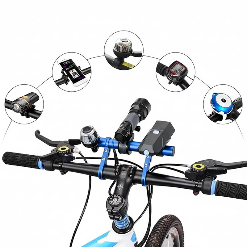 Este extensor realmente ajudou a organizar meu guidão. Agora consigo colocar minha luz, campainha e suporte de celular juntos. Estou super satisfeito!