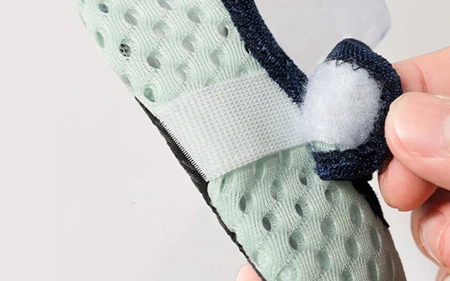 O fechamento em velcro permite colocar e tirar os sapatos em questão de segundos.