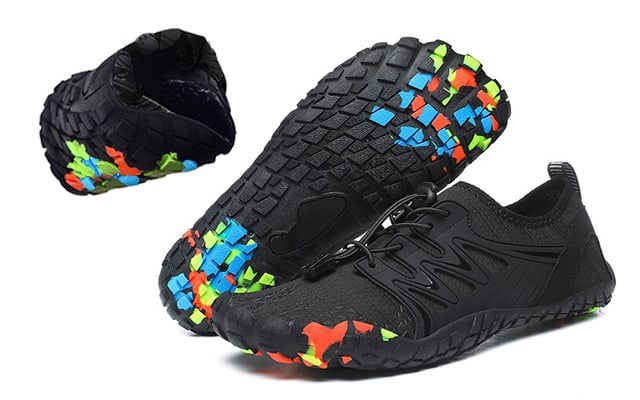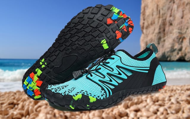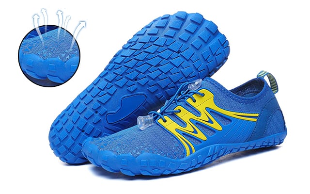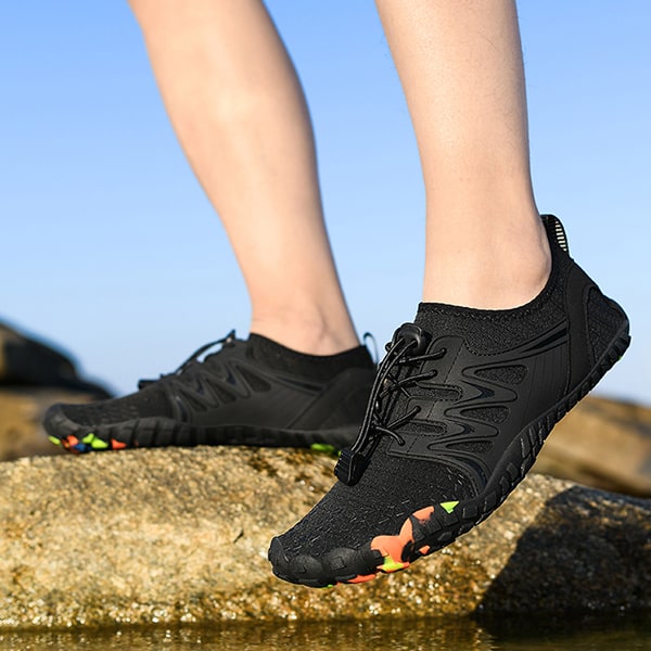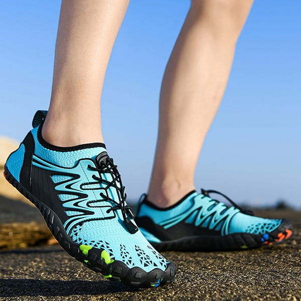 Os nossos ténis aquáticos permitem que os seus pés flexionem e dobrem como fariam na água, sem apertar os dedos ou arcos.