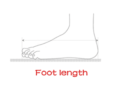 - 1. Encontre a medida do comprimento do seu pé na tabela de tamanhos e anote o tamanho correspondente.