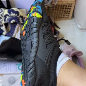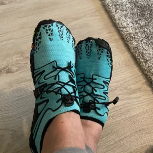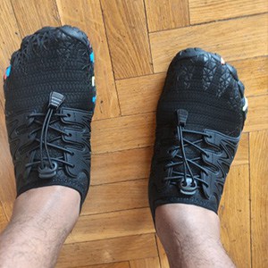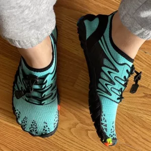 Os nossos ténis aquáticos permitem que os seus pés flexionem e dobrem como fariam na água, sem apertar os dedos ou arcos.