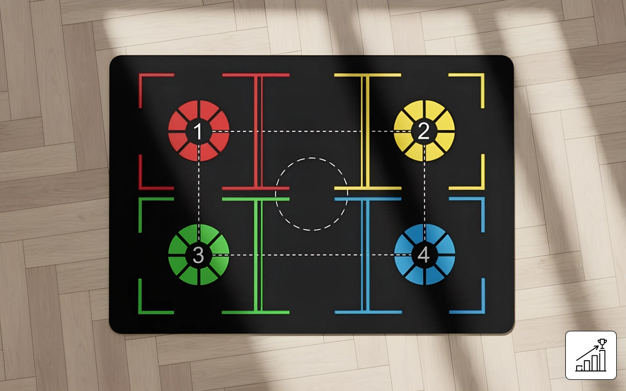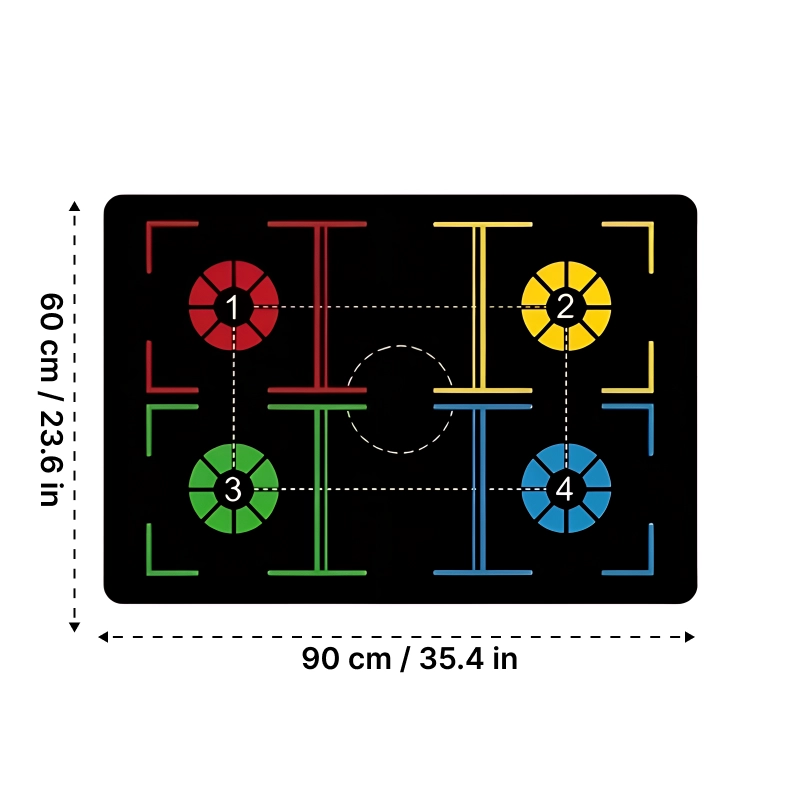 As zonas demarcadas do tapete Threo ajudam a guiar seus movimentos a cada utilização. Suas habilidades vão evoluir mais rápido ao praticar exercícios direcionados diariamente.