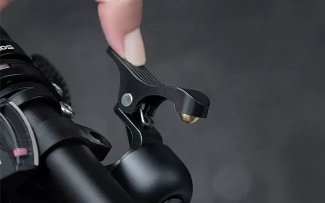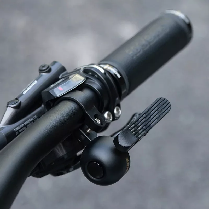 A campainha de bicicleta Threo tem um design elegante e ocupa pouco espaço. Deixa espaço para luzes e outros acessórios.