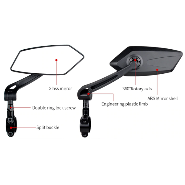 Os nossos retrovisores para bicicletas utilizam lentes de vidro em alta definição, base em liga de alumínio de alta resistência e estrutura durável. Todos os materiais são fortes o suficiente e difíceis de partir, independentemente da velocidade a que prefira pedalar. Além disso, o suporte do retrovisor para guiador é totalmente rotativo e oferece visão completa atrás de si. Pode ser ajustado a qualquer momento para ver o que vem de diferentes direcções. Ademais, os braços longos dos retrovisores proporcionam cobertura óptima para melhorar a sua visão periférica. Além disso, o design do mastro flexível não treme mesmo ao pedalar em estradas irregulares.