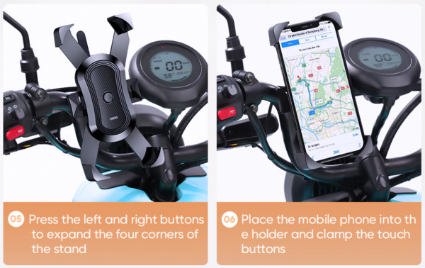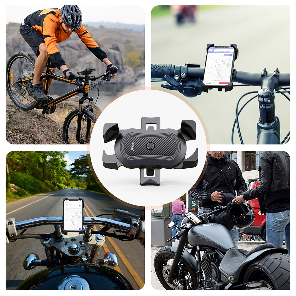Este suporte para telemóvel de bicicleta possui operação com uma mão, tornando o seu passeio extremamente fácil. Se quiser parar e tirar uma fotografia rápida durante o passeio, é rápido e fácil remover o seu telemóvel do suporte e colocá-lo de volta quando terminar. Sempre que quiser retirar o telemóvel, basta pressionar as barras de libertação para o destravar.