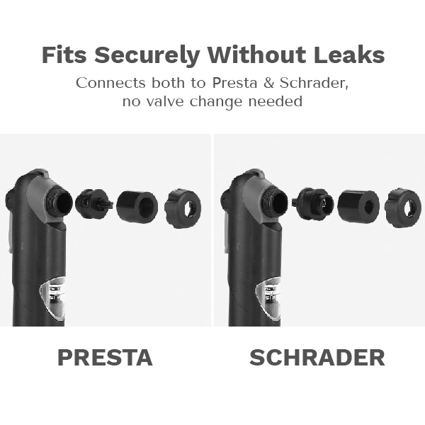 Esta bomba compacta foi concebida para acompanhar você no passeio — seja guardada no bolso ou presa ao quadro da bicicleta. É feita para funcionar tanto com válvulas Presta (bicicletas de estrada e de desempenho) como Schrader (pneus de mountain bike, bicicletas infantis). Leva apenas alguns segundos e não requer ferramentas — para alternar de um tipo para o outro. Esta bomba é ligada diretamente à válvula, sem necessidade de montagem ou mangueira extra. Utiliza um design de alto volume que infla tanto na pressão como na sucção. A bomba suporta até 120psi.