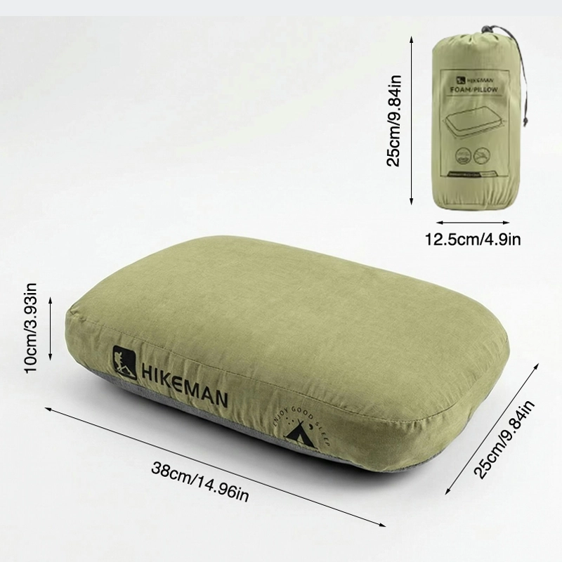 Uso este travesseiro pequeno para acampamentos e viagens de carro. A espuma molda-se lentamente ao meu pescoço e a capa macia nunca fica suada, mesmo no verão.