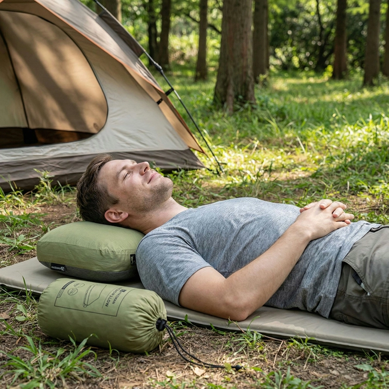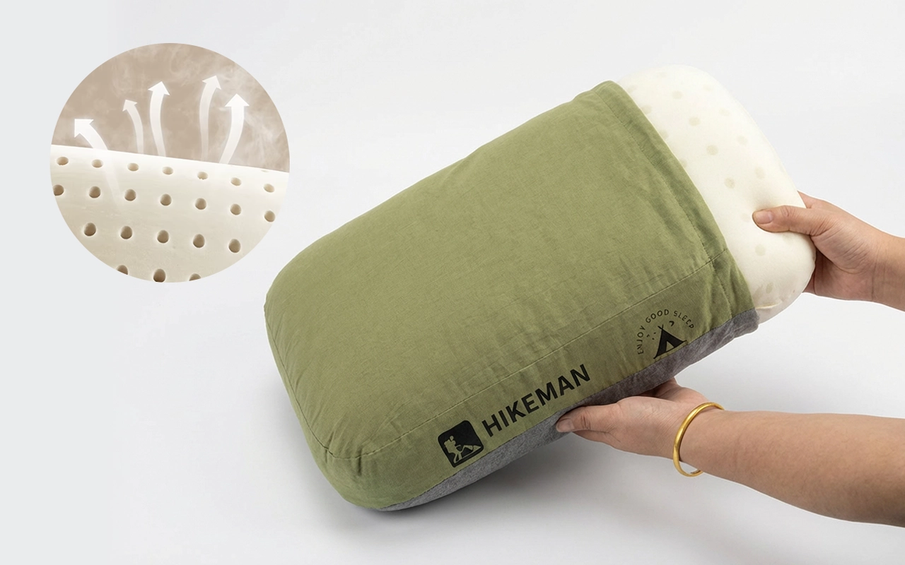 Comecei a usar este travesseiro de camping até em casa nas noites quentes. Ele permanece arejado, meus músculos do pescoço relaxam e posso abrir o zíper da capa para lavar toda semana.