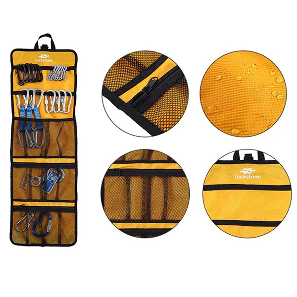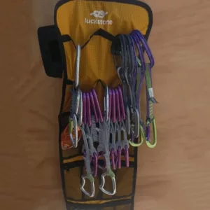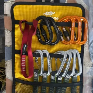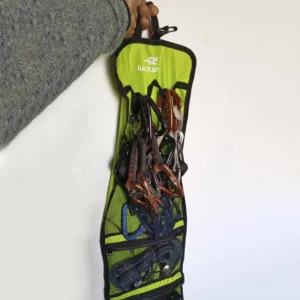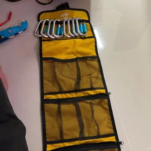 Armazenamento espaçoso e bem organizado para equipamentos de escalada.