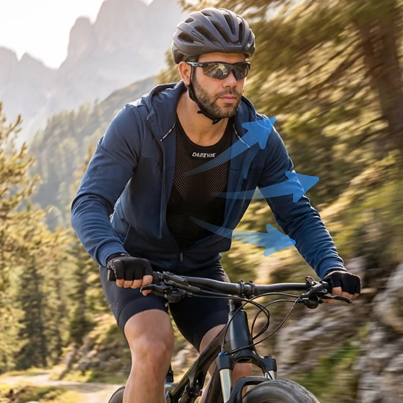 Comprei isto para os passeios de BTT do meu marido. Ele chegou a casa a dizer que a camisola se manteve leve, sem sensação pegajosa, e que se sentiu mais fresco o tempo todo.