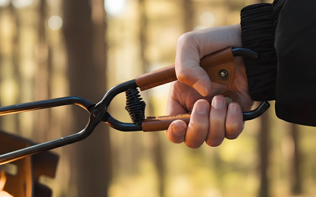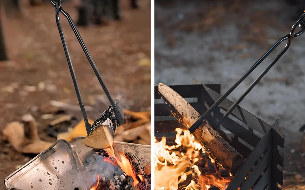 Fogueiras são mais divertidas agora que não tenho medo de me queimar. Essas pinças tornam fácil manter o fogo aceso.
