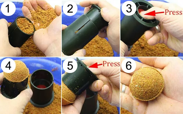 Esta ferramenta torna o formato da isca fácil e rápido. Produz bolas perfeitamente redondas em segundos. Chega de dedos colados ou iscas irregulares. Alcance lançamentos mais longos com bolas sólidas e compactas. Capture mais peixes com uma apresentação precisa da isca.