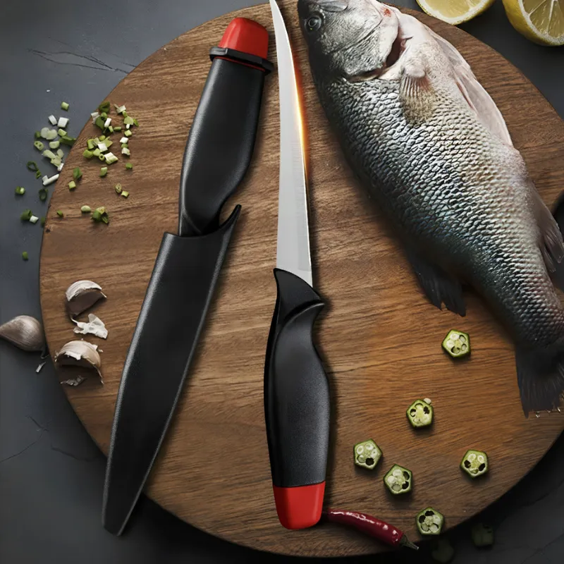 Filetar salmão em casa sempre foi difícil, mas esta faca é leve e confortável. A capa traz tranquilidade ao guardar junto ao meu equipamento.