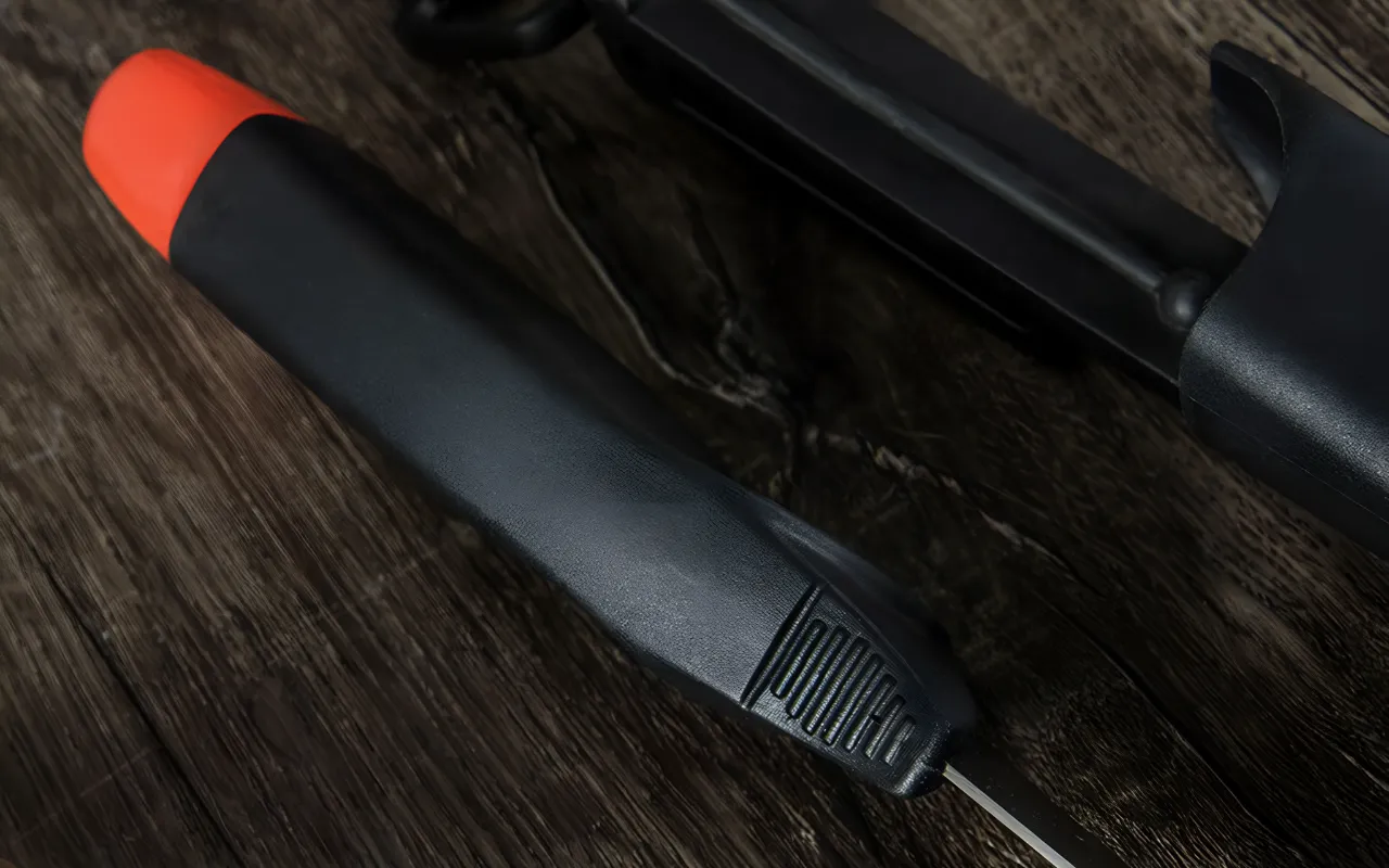 Uma capa resistente protege as mãos contra deslizes acidentais e danos. Transporte com confiança sabendo que a lâmina permanece segura quando guardada.