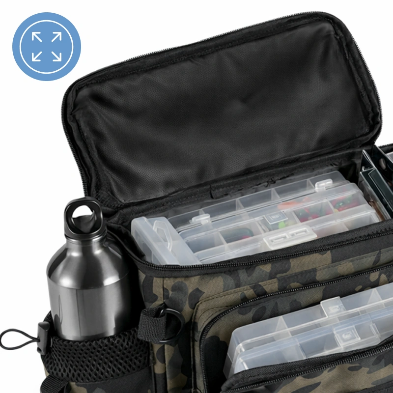 Vários bolsos permitem localizar rapidamente todas as ferramentas de pesca dentro da bolsa. Pegue molinetes, iscas ou linhas instantaneamente sem esvaziar a bolsa.