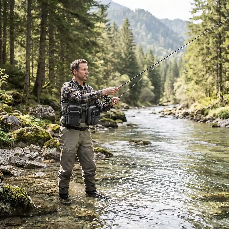 Guio amigos em riachos locais e uso este chest pack todo fim de semana. O acesso rápido ao tippet e aos indicadores significa mais tempo ajudando eles a pegar trutas.