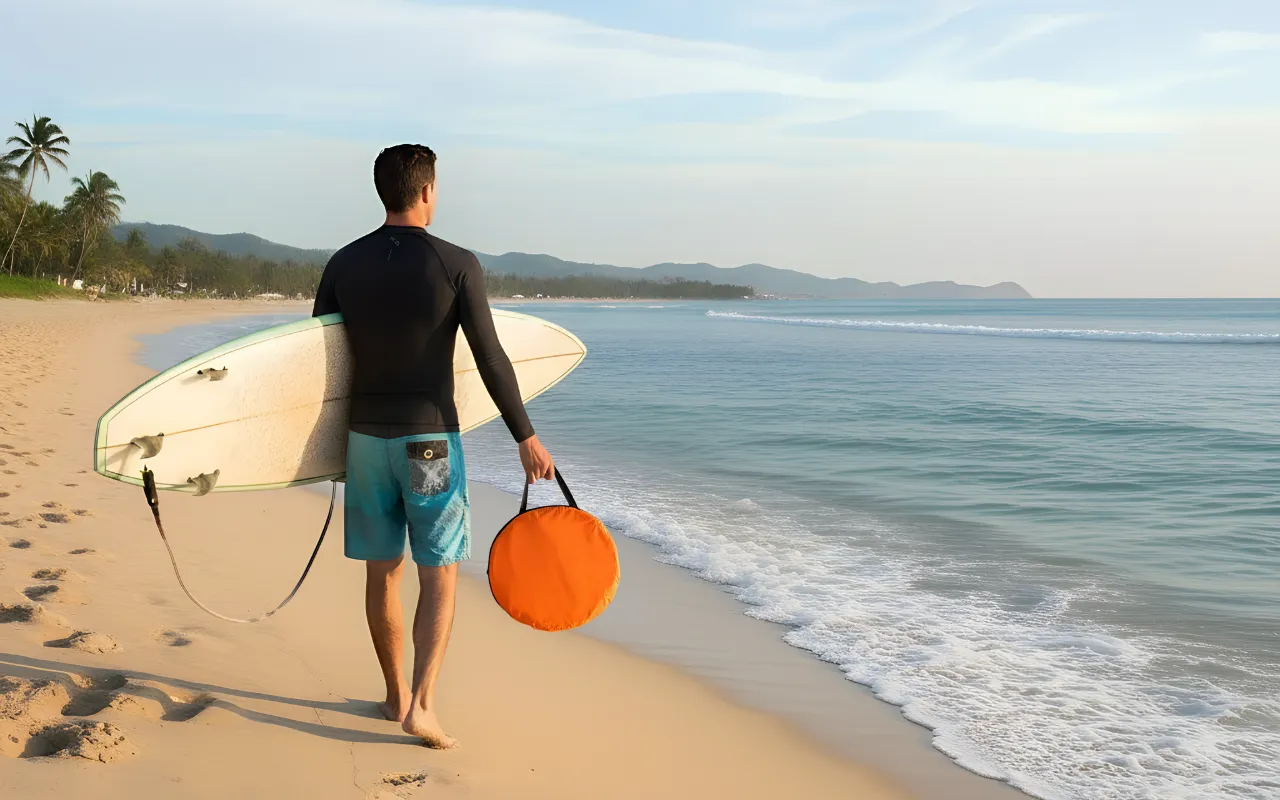 Carregar a vela dobrada é super leve. Adoro não ter que carregar peso extra até a água, cabe pequena na minha mochila.