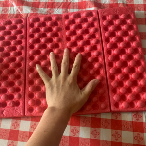 Feito de espuma XPE, este colchonete é resistente a rasgões e não se desfaz mesmo após uso prolongado.