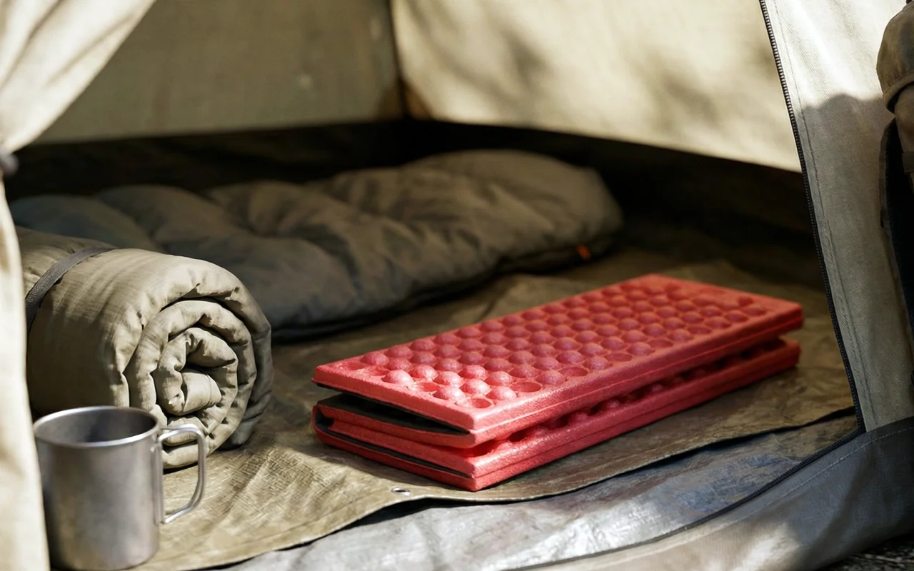 Feito de espuma XPE, este colchonete é resistente a rasgões e não se desfaz mesmo após uso prolongado.