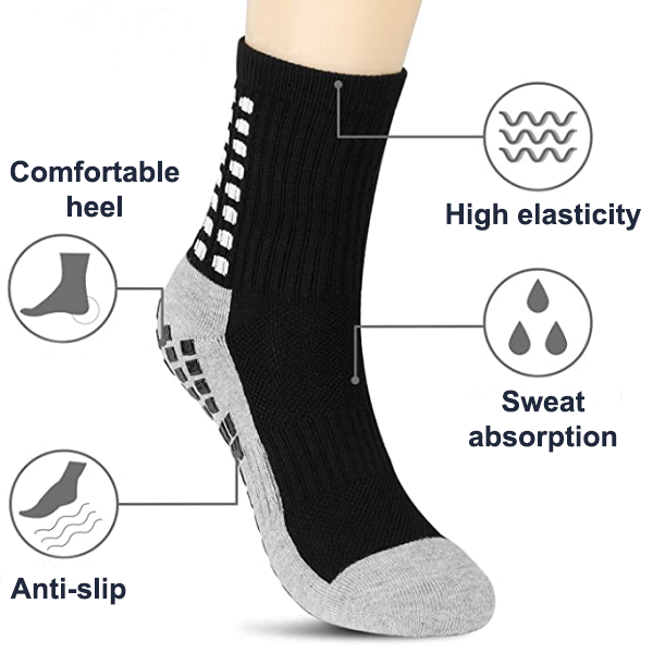 As Meias de Futebol THREO foram concebidas para ajudar qualquer entusiasta do desporto a realmente experimentar a alegria dos desportos e jogos. São perfeitas para qualquer actividade ao ar livre ou interior, incluindo basquetebol, voleibol, ténis, corrida, caminhada, yoga e outras! Ao eliminar o deslizamento dentro do calçado, as nossas meias permitir-lhe-ão ter mais confiança nos seus movimentos quando isso for mais crucial. Elas melhoram a sua agilidade e desempenho geral durante qualquer passatempo activo. Além disso, estas meias eliminam pés doloridos e bolhas pós-exercício para uma experiência desportiva mais agradável.