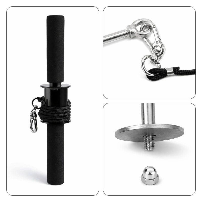 Aço resistente e nylon forte garantem segurança duradoura. Conte com o Threo Wrist Roller para suporte constante em cada treino.