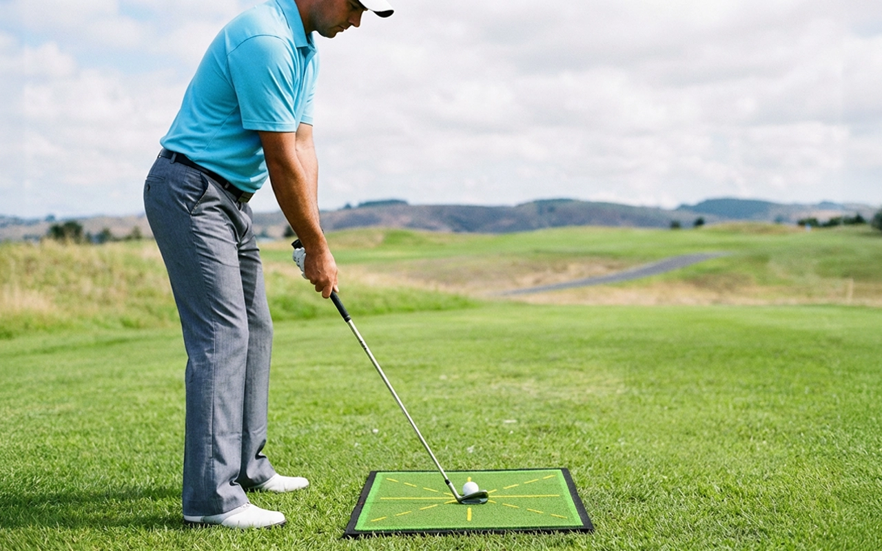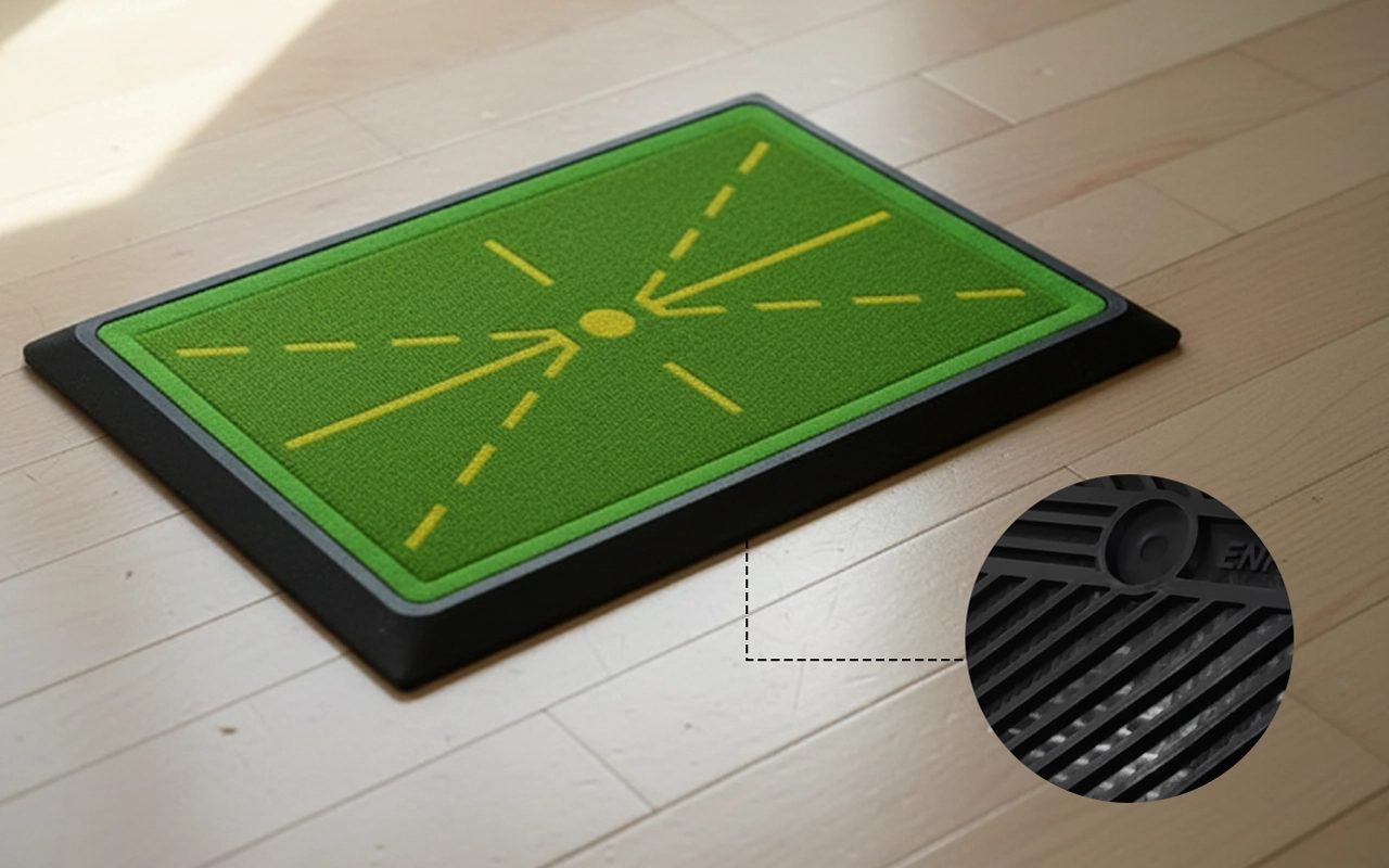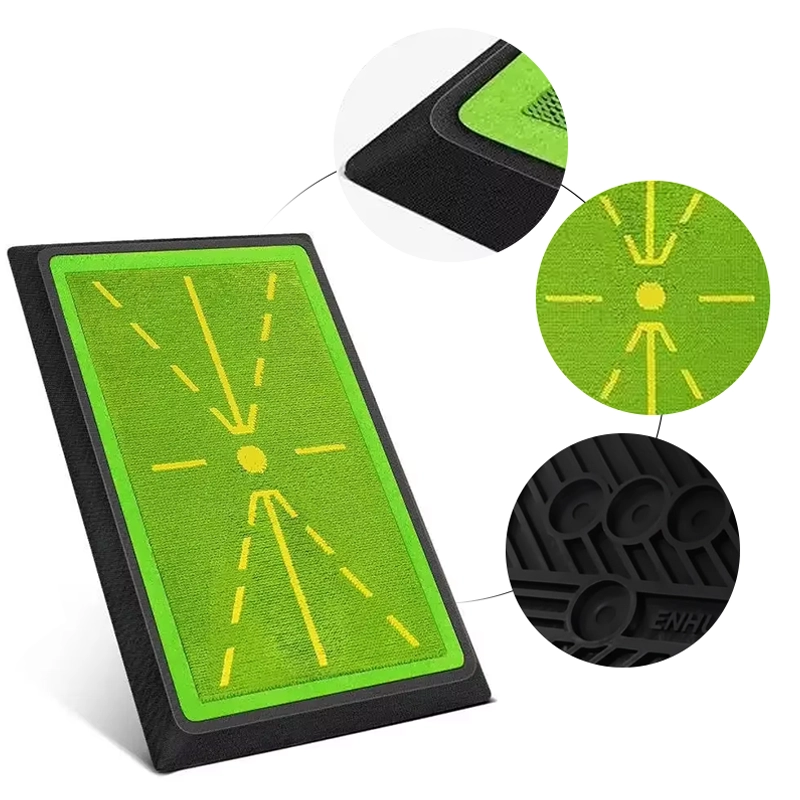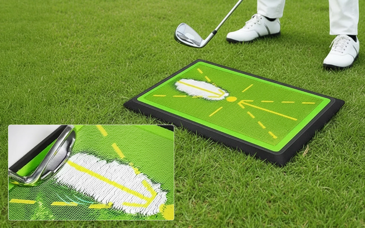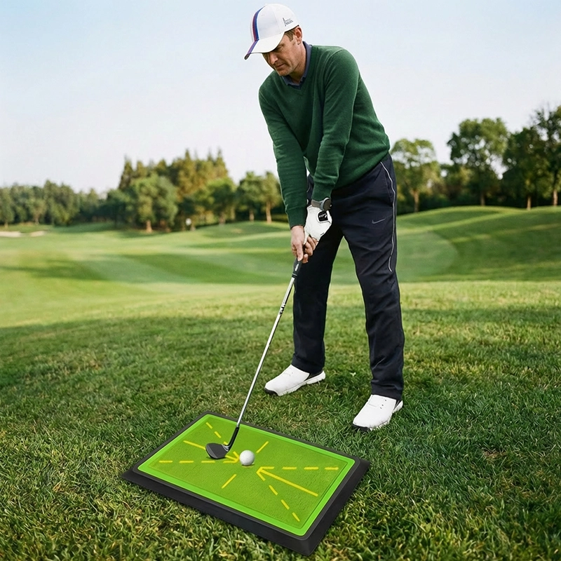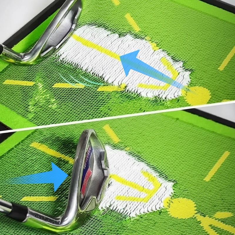 Nosso tapete de treino mostra claramente as marcas de impacto, ajudando você a identificar e corrigir erros comuns no swing.