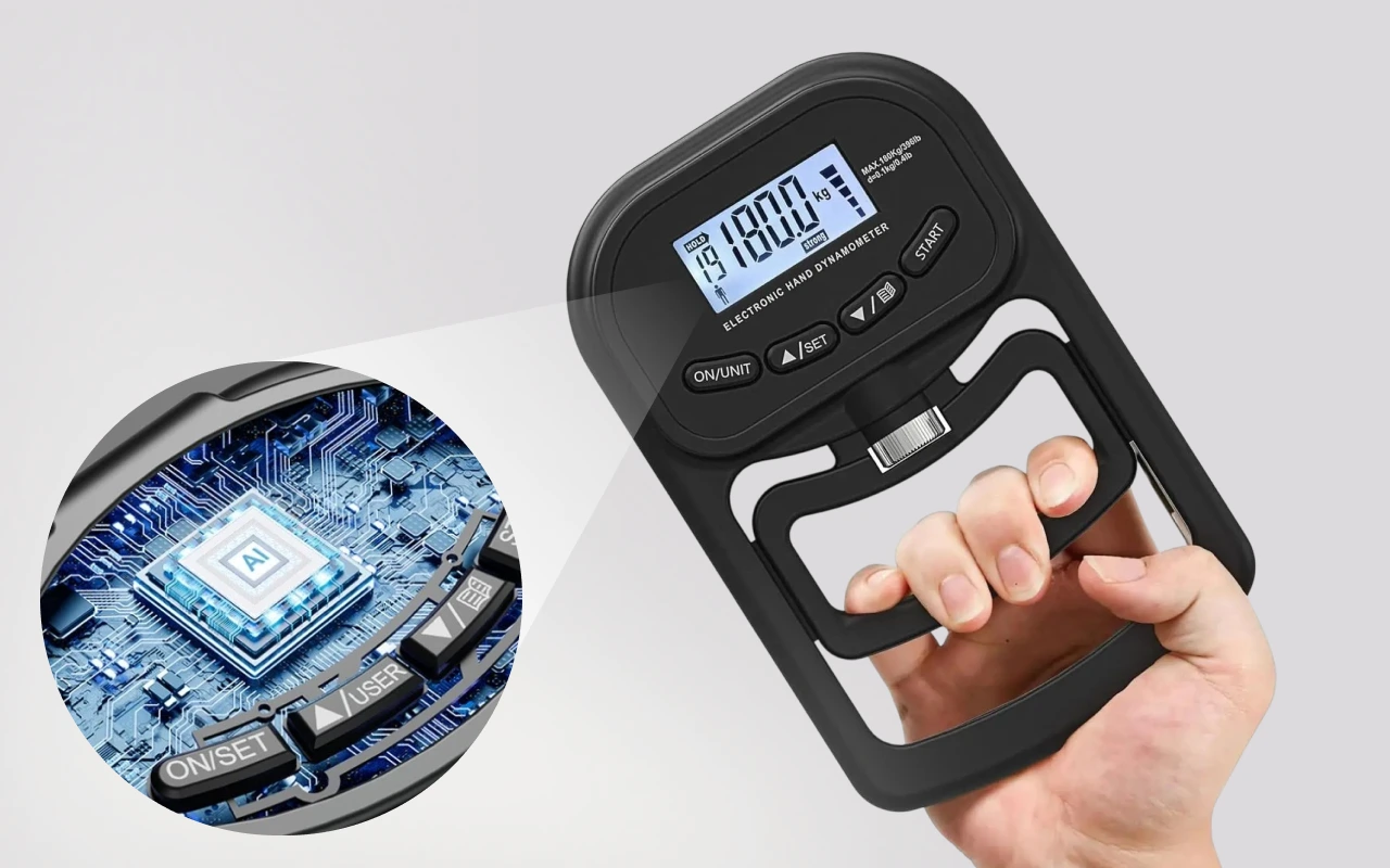 O sensor altamente preciso garante que os resultados são sempre fiáveis. Cada aperto é medido com exatidão, para que possa confiar nos dados.