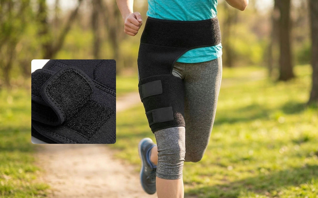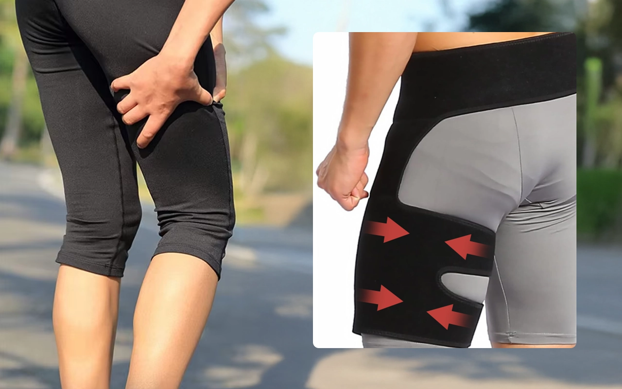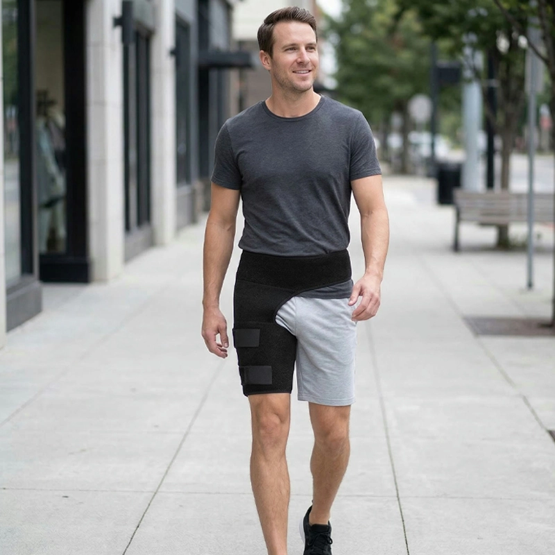 Comprei isto para o meu marido depois de uma lesão jogando futebol. O suporte em torno do quadril e da coxa ajudou-o a voltar a se mexer normalmente sem fazer careta a cada passo.