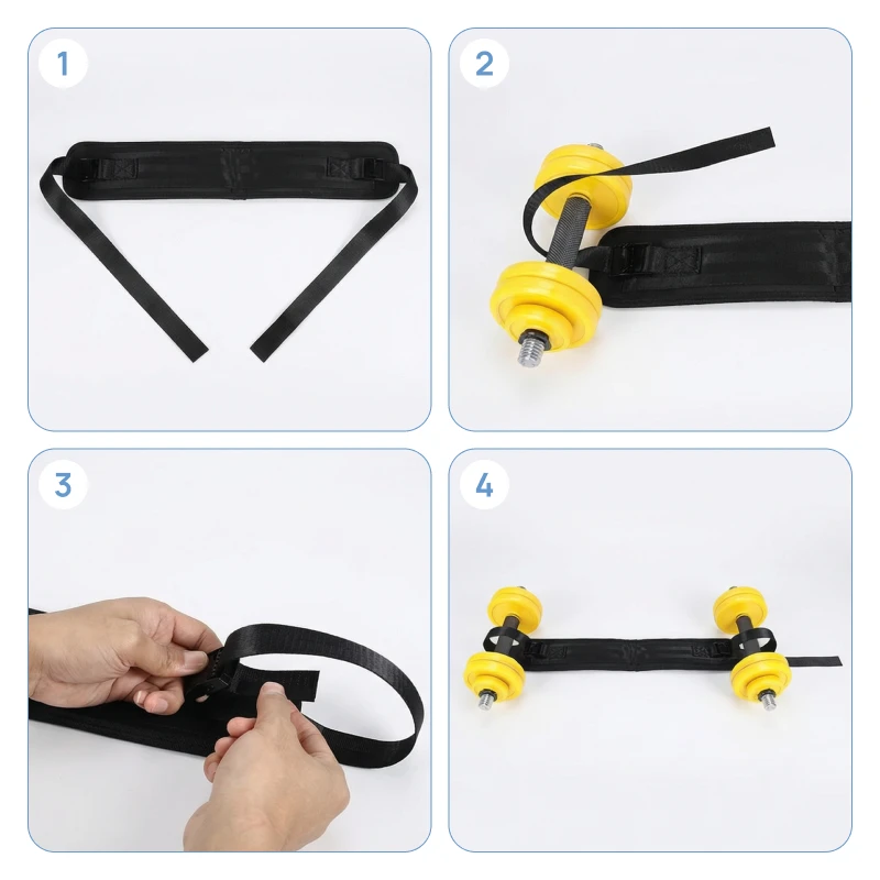 As tiras ajustáveis se adaptam a diferentes tamanhos de cintura e formatos de halteres. Perfeito para iniciantes e experientes em fitness.