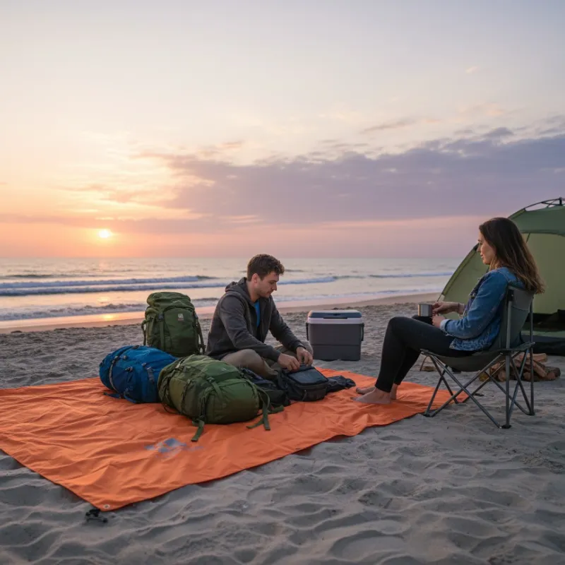 Transforme de vestuário em lona de chão prática em segundos. Você também pode montá-lo como abrigo contra a chuva ou sol.