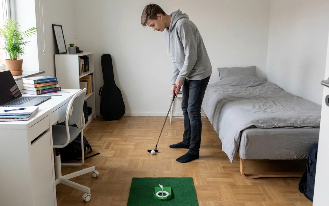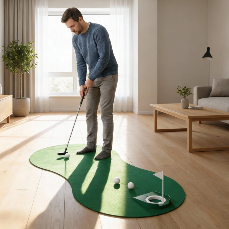 A taça de putting é ótima para aliviar o estresse depois do trabalho. Eu monto na sala e fico perdido praticando.