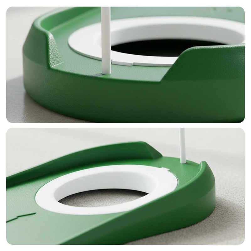 Sinceramente, acho esse pequeno alvo de golfe prático para os dias que quero relaxar, mas ainda assim treinar meu putting. Leve e fácil de guardar.