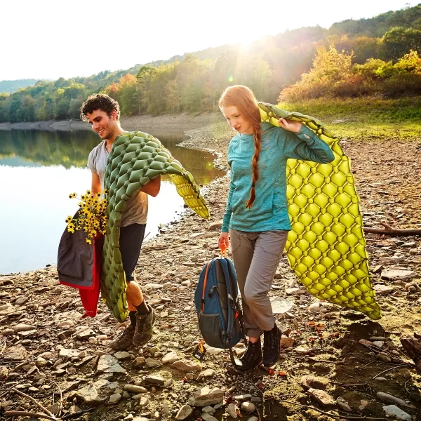 Para o manter confortável enquanto descansa no chão, este colchão possui uma espessa espuma macia de 6,5 cm com superfície quente, concebida para uso ao ar livre. O colchão é fabricado com materiais de alta qualidade: processo de laminação de dupla camada, tecido TPU Nylon e revestimento impermeável resistente ao desgaste. Pensando nas necessidades da coluna cervical, um travesseiro ergonómico também está incluído para proporcionar um apoio relaxante para a cabeça. O design inovador de câmaras de ar hexagonais distribui a pressão para suportar o seu corpo.