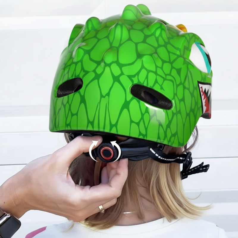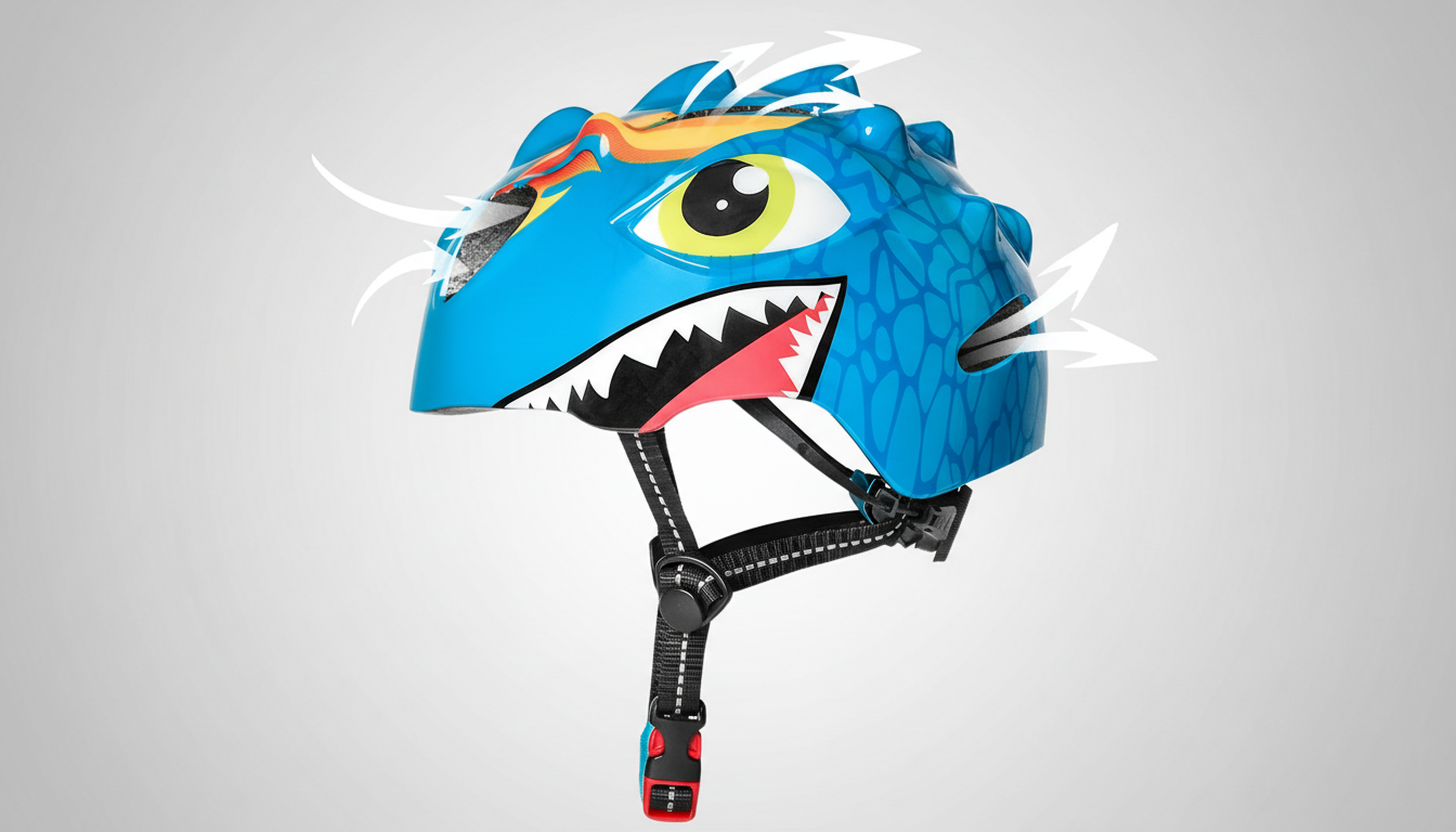 Comprei o capacete de dinossauro para meu sobrinho e agora ele nunca reclama em usar. Ele acha que faz parte da aventura de dinossauro dele!
