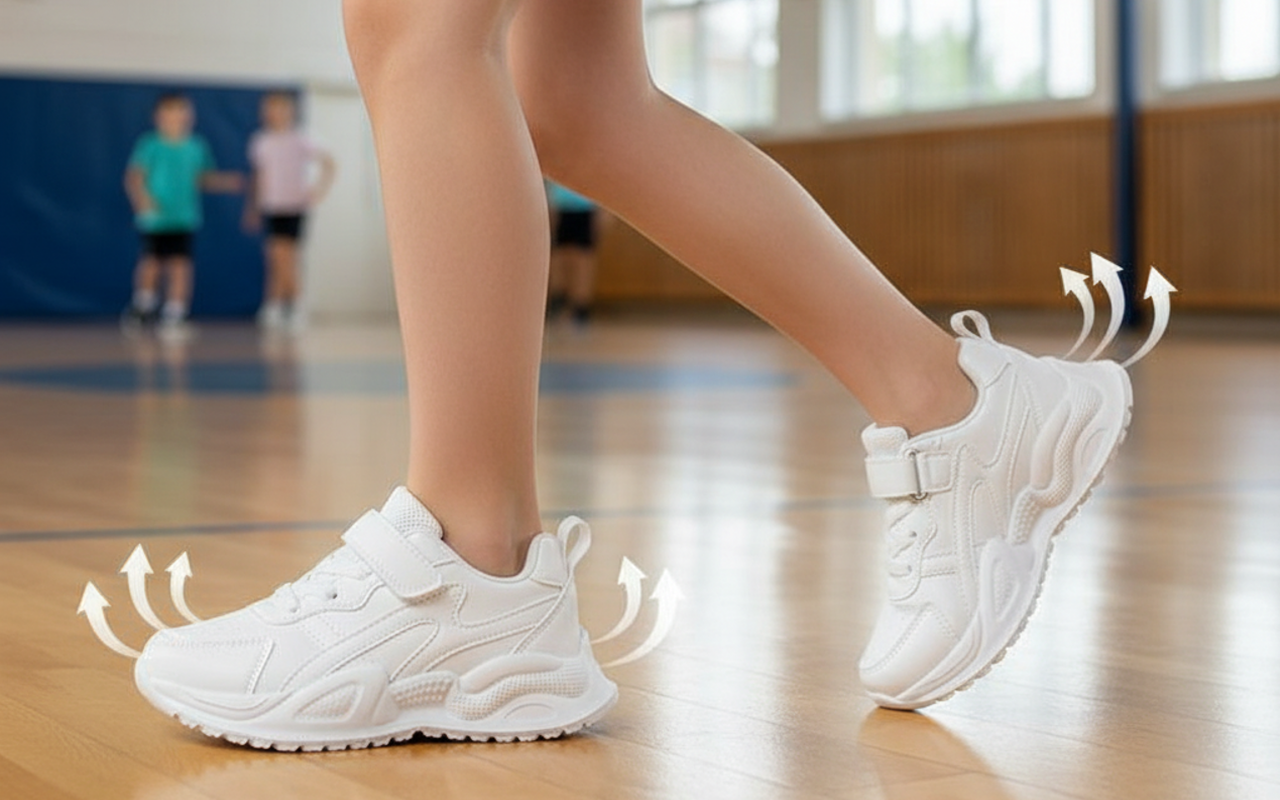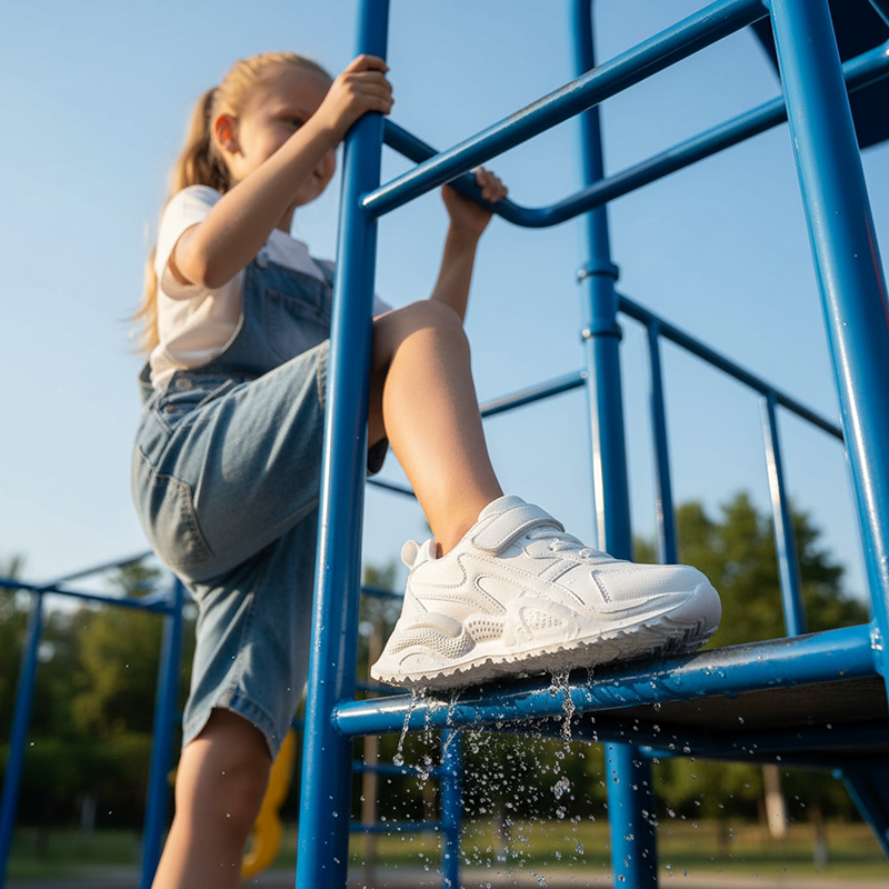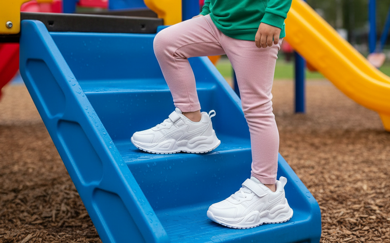 Solas grossas ajudam a evitar escorregões em playgrounds molhados ou pisos de ginásio. As crianças aproveitam movimentos seguros, onde quer que explorem.