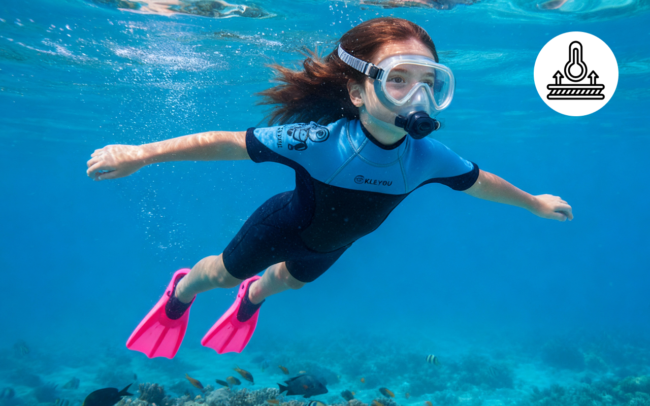 Água fria não é mais um problema para nadadores ativos. O tecido especial mantém o calor próximo da pele, tornando toda atividade agradável.