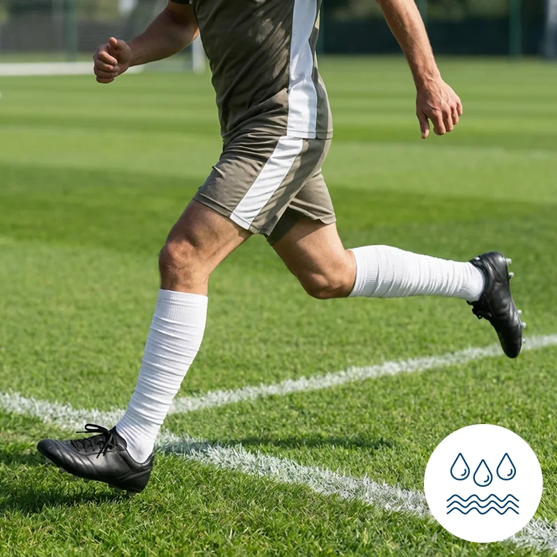 Meias compridas confortáveis, mantêm-se secas durante treinos longos.