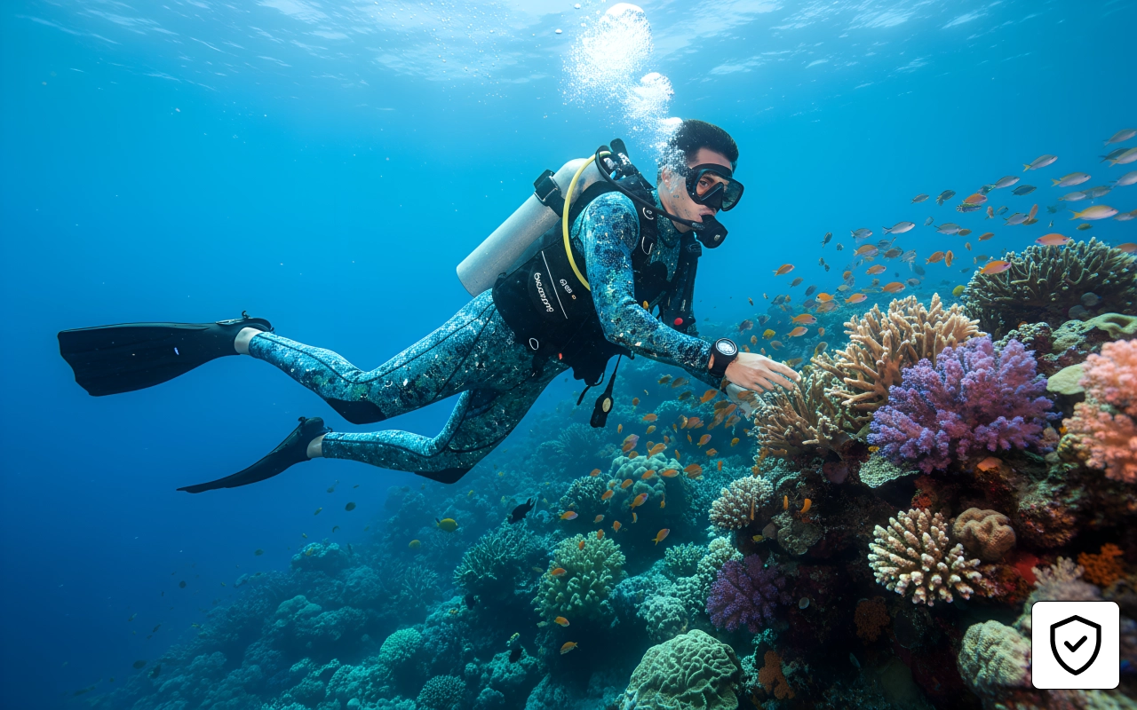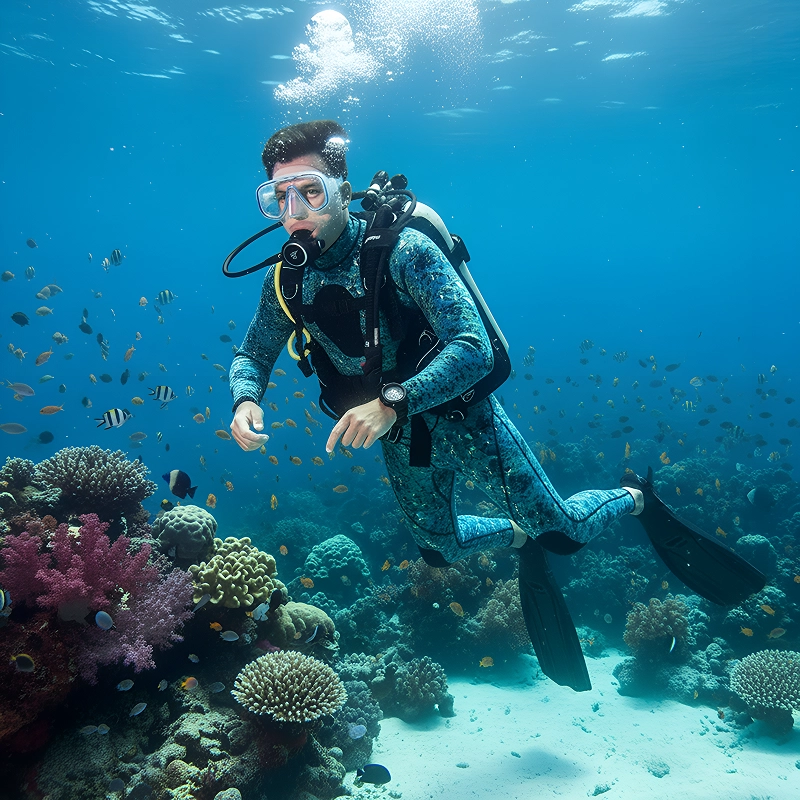 Neoprene de três milímetros mantém o calor corporal constante. A água fria não vai impedir sua experiência subaquática.