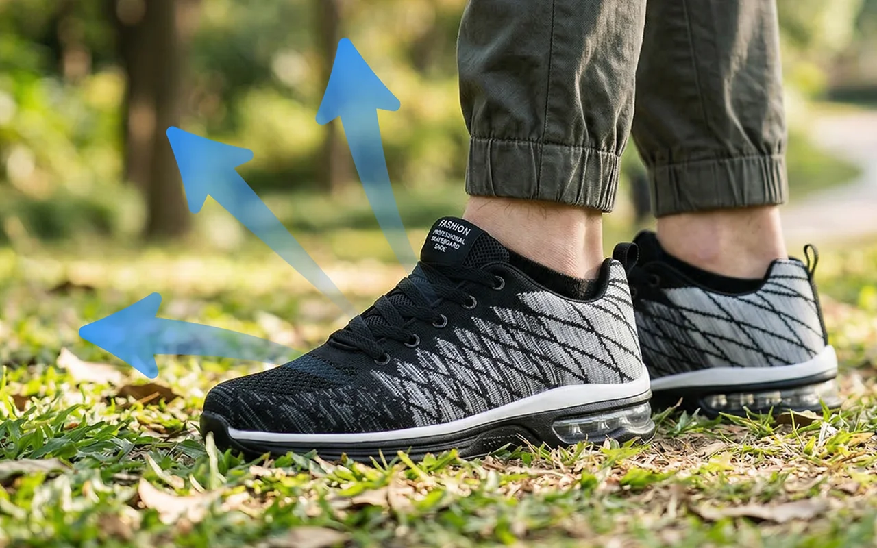 A malha respirável permite que o ar flua livremente a cada momento. O clima quente e os pés suados já não causam desconforto.