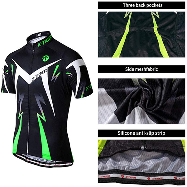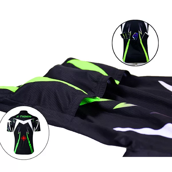 A camisola de ciclismo é elegante e altamente visível, com elementos de design modernos. Conta com um tecido de alta qualidade desenvolvido para oferecer controlo de humidade e proteção solar. Ajuda a transportar o suor e a humidade para longe do corpo, onde evaporam rapidamente. Na parte de trás da camisola, há 3 bolsos traseiros para carga. Esta camisola também possui um fecho de correr frontal completo para facilitar o vestir e proporcionar ventilação durante longos passeios.
