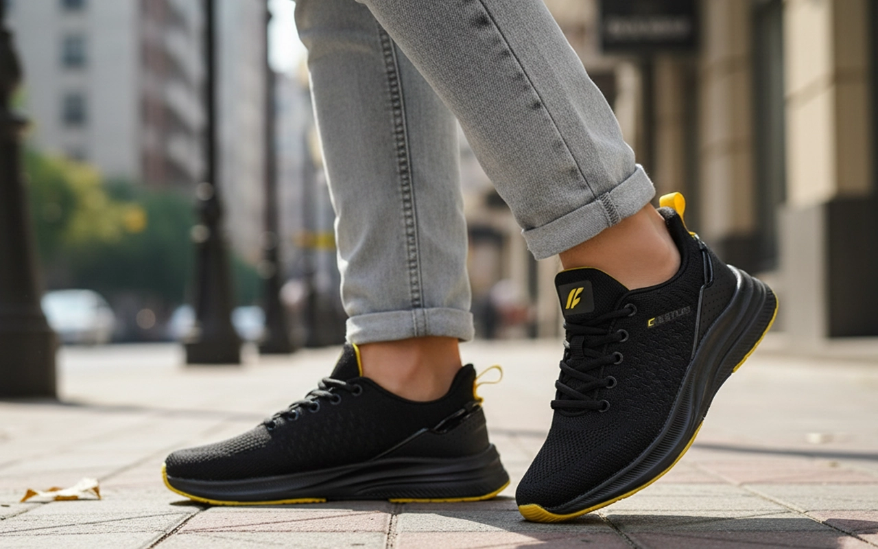 O design em malha deixa o ar entrar, o que eu gosto. Super leve para correr e combinam muito com jeans também.