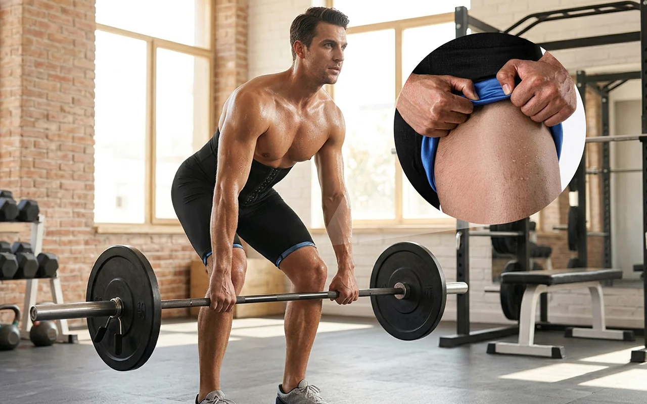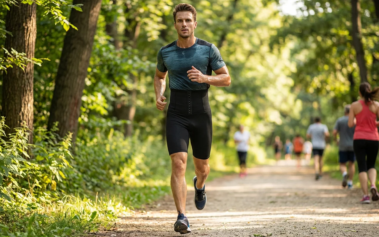 Uso estas calças modeladoras por baixo dos meus shorts para jogar basquete. Minha barriga parece mais firme e eu noto mais suor nas pernas sem me sentir limitado.