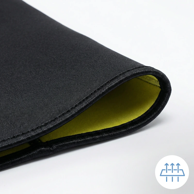 Material flexível permite movimento livre durante os treinos ou em repouso. Forro respirável evita superaquecimento ou irritação na pele.