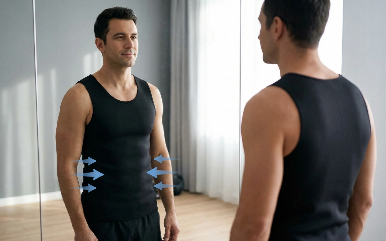 Comprei este colete sauna depois que meu jeans ficou apertado. Ele realmente aumenta o suor nas caminhadas, e minha barriga parece mais lisa embaixo das camisas na mesma hora.