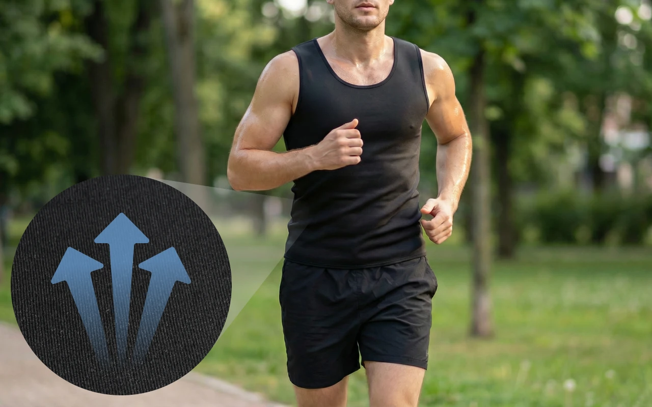 A regata fica justa sem ser dura. Eu suo demais fazendo tarefas simples, e minhas camisas agora caem mais retas na região da barriga.